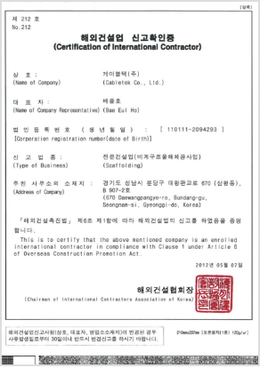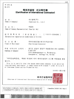 케이블텍(주)은 지속적인 R&D 강화를 통한 국내외 특허, 실용신안 등의 지적재산권 취득으로 기업 가치를 증대하고